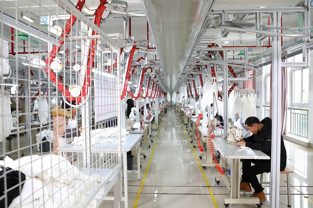 以600畝絲綢工業園為大本營的本地生產集群,全力打造中高端女裝生產基地,以信息化領航,以制造業與自動化、互聯網相融合為發展方向,實現集團工業智能制造轉型升級,全面提升了生產運營效率。