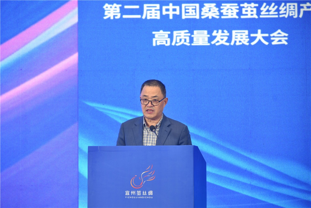 11月25日,以“河池桑蠶繭,世界新思路”為主題的2022中國(guó)絲綢大會(huì)暨第二屆中國(guó)桑蠶繭絲綢產(chǎn)業(yè)高質(zhì)量發(fā)展大會(huì)在廣西宜州開(kāi)幕。河池市委書記秦春成、中國(guó)絲綢協(xié)會(huì)會(huì)長(zhǎng)唐琳出席并致開(kāi)幕辭,市長(zhǎng)王軍作《河池市桑蠶繭絲綢全產(chǎn)業(yè)發(fā)展報(bào)告》。中國(guó)絲綢協(xié)會(huì)副會(huì)長(zhǎng)、集團(tuán)董事長(zhǎng)周國(guó)建受邀作《堅(jiān)持不懈強(qiáng)主業(yè)、腳踏實(shí)地謀發(fā)展》主題演講,并為“全國(guó)繭絲綢行業(yè)終身成就獎(jiǎng)”獲得者們頒獎(jiǎng)。