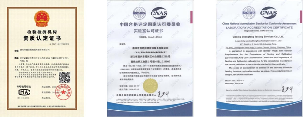 集團旗下第三方檢測機構——晟紡檢測于今年5月底接受了中國合格評定委員會(CNAS)關于實驗室能力的資質認定有效期6年的換證復評審工作。經過評審以及整改,于7月中旬順利通過評審取得CNAS證書。擁有CNAS的數據得到國際間認可(ILAC),報告被許多國內外客戶認可。